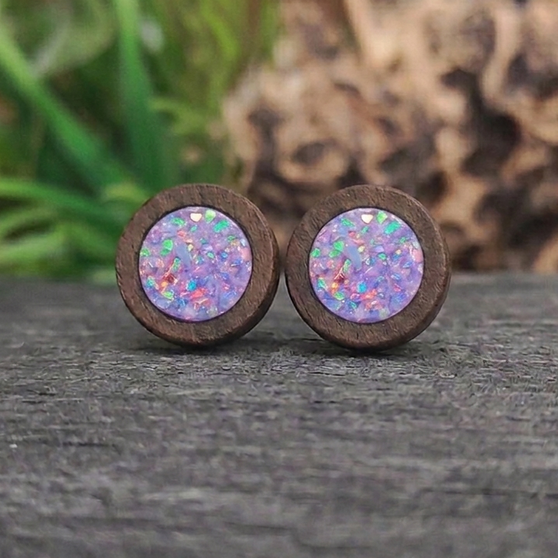 Ručně vyrobené a detailně propracované dámské náušnice - pecky z amerického ořechu. V náušnicích jsou kamínky fialového OPÁLU.Lůžko náušnic a zapínání je z chirurgické oceli, která nečerná, je vyleštěná a vhodná pro alergiky. Zapínání náušnic je na puzetu. Tento originální přírodní šperk bude slušet každé ženě či dívce, která miluje přírodu. Vyrobeny s láskou ke dřevu.