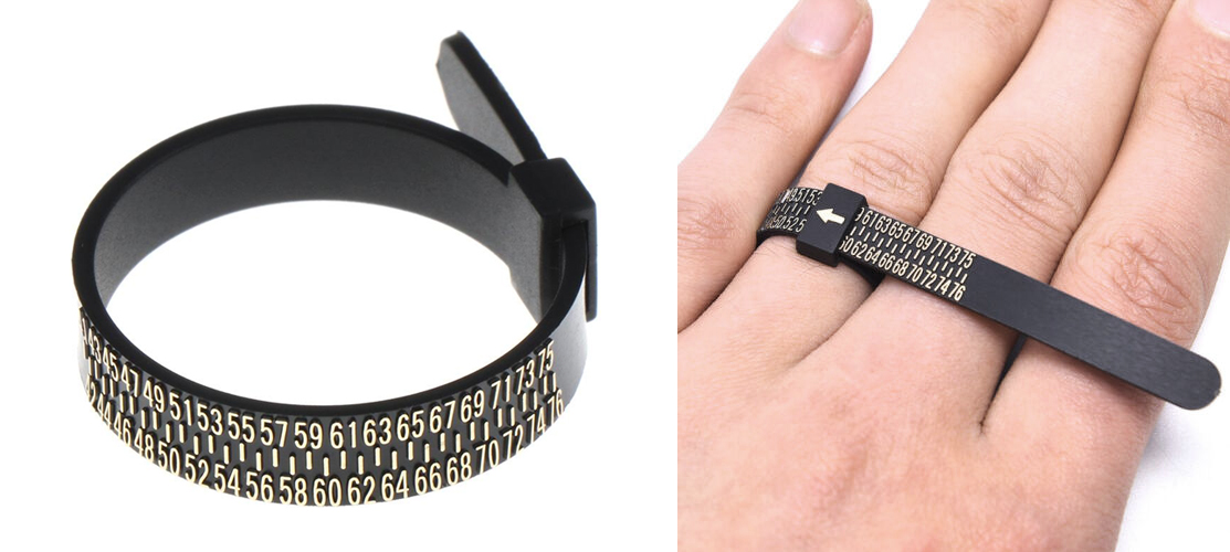 Díky měřícímu pásku ihned zjistíte přesnou velikost daného prstenu. Je vyroben z odolného černého plastu s číslicemi a značkami zlaté barvy, které usnadňují čitelnost. Zobrazuje velikosti EU. Určí velikost šperku od 41 - 76 mm.